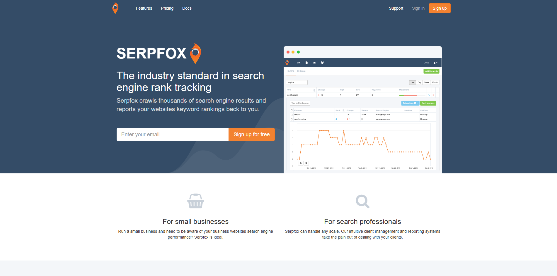 Visit the Serpfox website and sign up for a free account. You’ll only need to provide an email address – no credit card is required for the free version. This gives you access to track up to 10 keywords indefinitely.