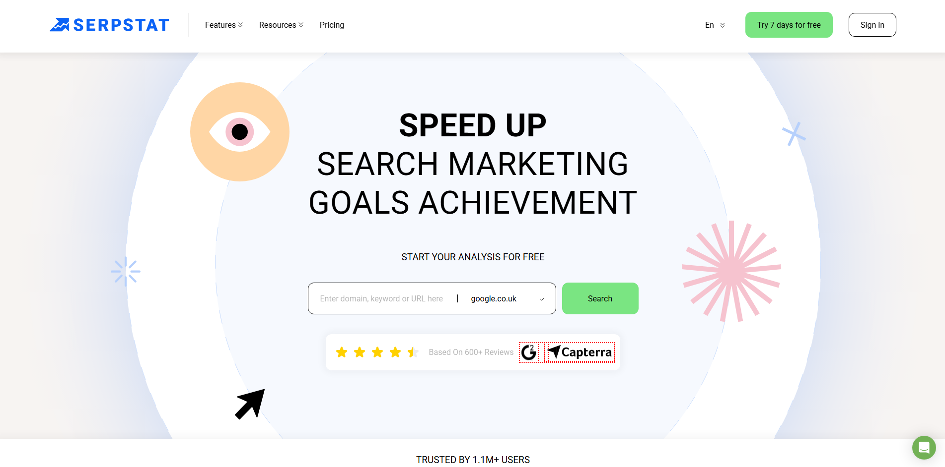 Get access to all of Serpstat’s SEO tools with a free 7-day trial. No credit card required.